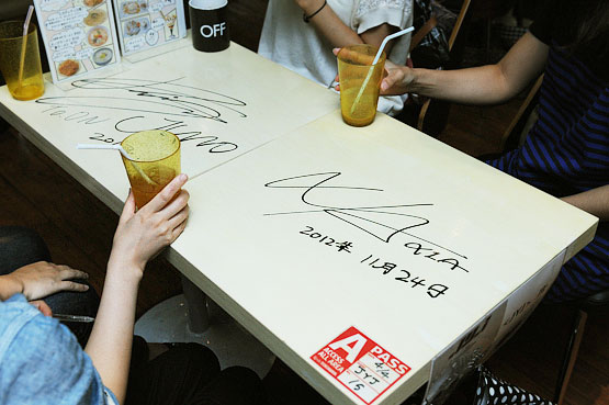 店内には来店した際にした訪れた韓国芸能人やK-POPスターのサインテーブルがあちこちにあります!またサインCDを抽選でプレゼントするイベントも毎週月曜日19時より開催しています☆