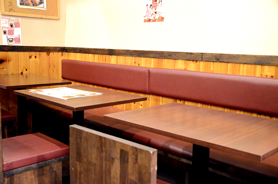 2010年に、お座敷だった店内を全部テーブル席にリニューアルしました。こじんまりとした店内は、木材がふんだんに使われており、シンプルで落ち着く空間です。