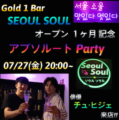 【イベント】俳優”チュ・ヒジェ”来店! 07/20 ”アブソルートParty ” in Gold1 Bar SEOUL SOUL.