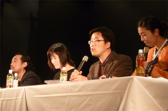 (写真③:一番左側がマッコリ協会キム・ジェホ会長、右側のパネリスト3名は、いずれもマッコリに精通する専門家達)