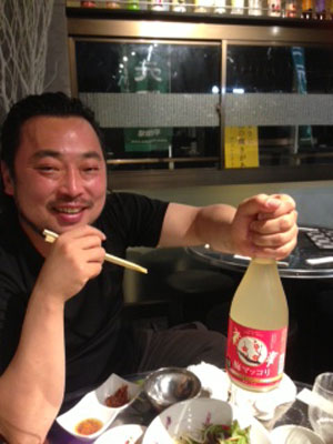 お次は、これまた変わったマッコリでございます。梅マッコリ。ご一緒させていただいたマッコリ協会金会長にマッコリモデルになってもらいました(笑)