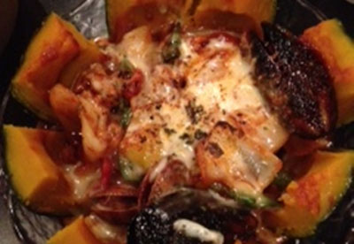 そして次に出てきたのは「海鮮カボチャチム」。とっても甘いカボチャとコチュジャンベースの魚介にチーズ。