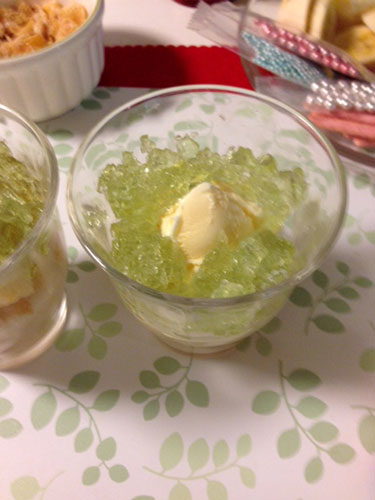 マッコリ、バニラアイス、生クリーム(白)、メロンゼリー(緑)、いちご(赤)・・・の色がクリスマスっぽくて綺麗でした☆彡