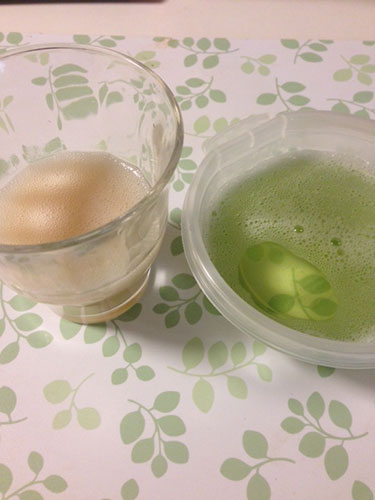 1.ゼラチンを50mlのお湯(80℃以上)でよく溶かす。