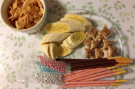 5.トッピングを用意します。(フルーツ、お菓子、シリアル、デコレーション用(アラザン)etc…)