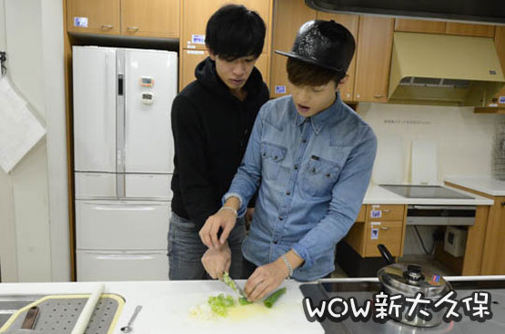 JUNEが長ねぎを切っているときに、「こうすれば楽に切れるよ」とKyo-heyが楽な切り方を伝授してました!JUNEも「切りやすい」と感激激♪