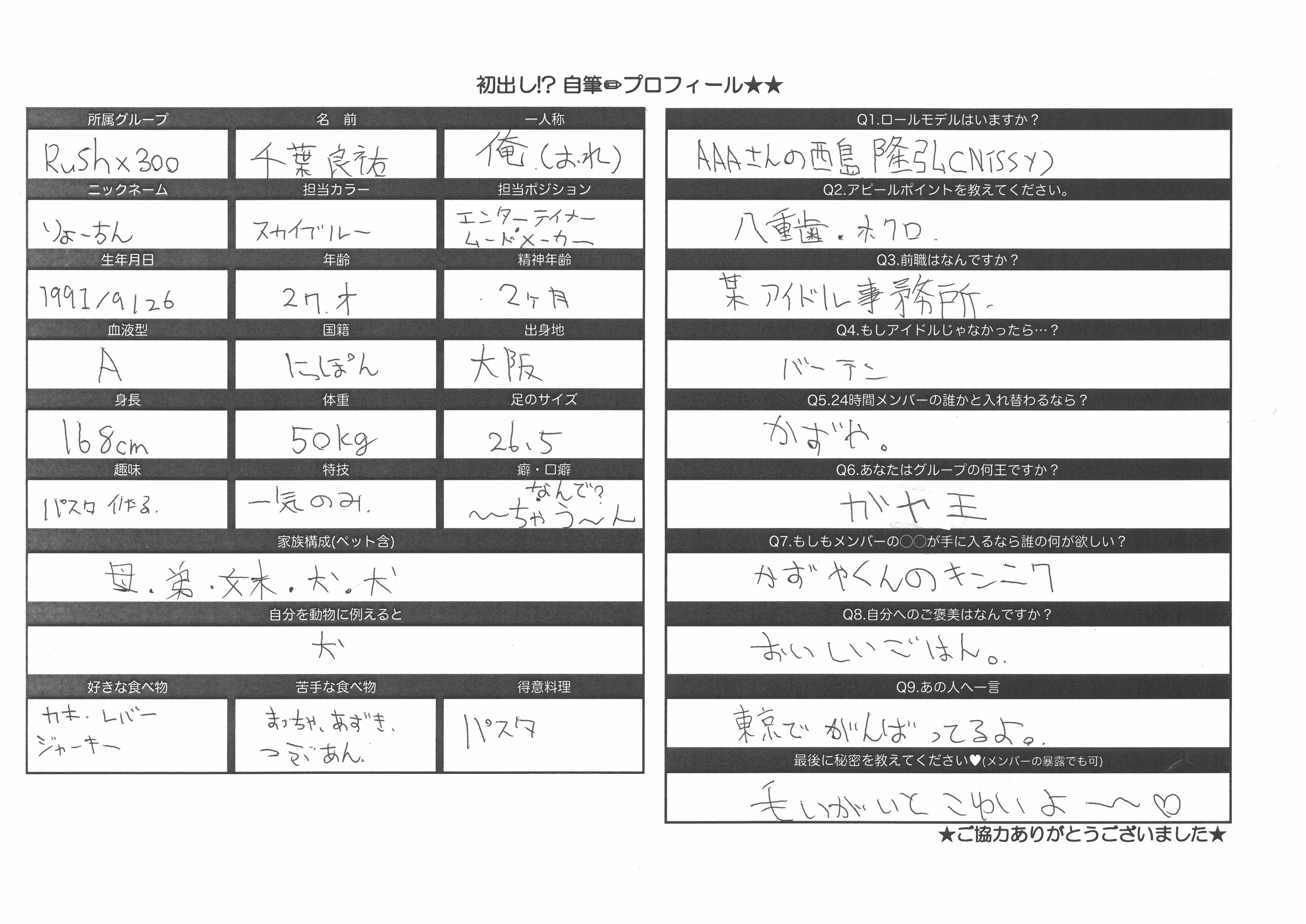 【千葉良祐 編】★ 直筆プロフィール初公開!! ★【Rush×300】