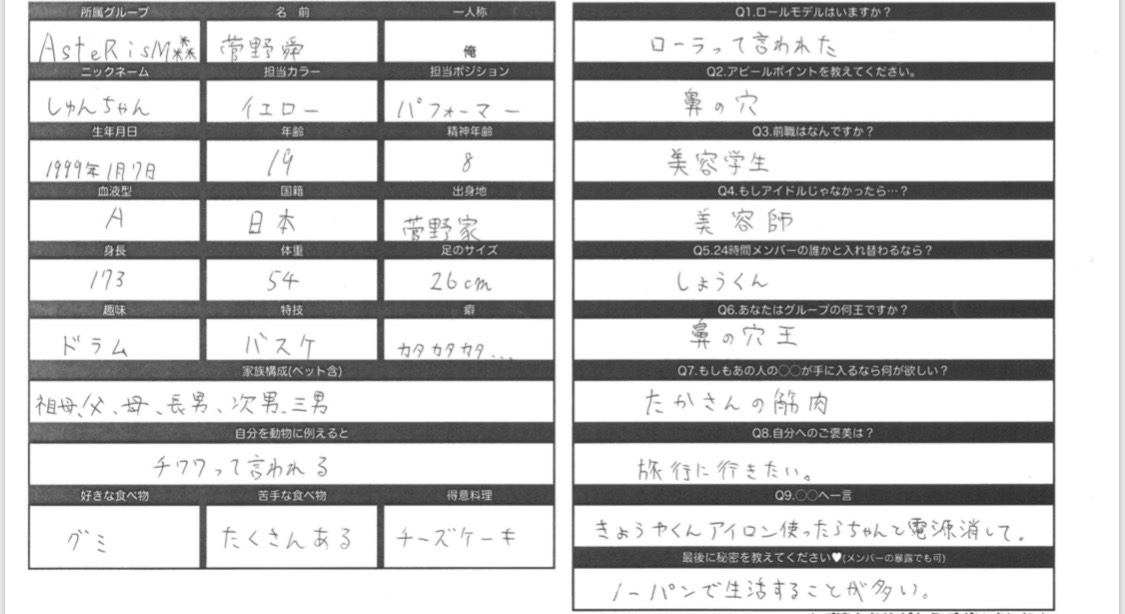 【AsteRisM⁂】直筆プロフィール公開★【菅野舜 編】