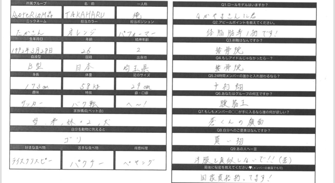 【AsteRisM⁂】直筆プロフィール公開★【TAKAHARU 編】