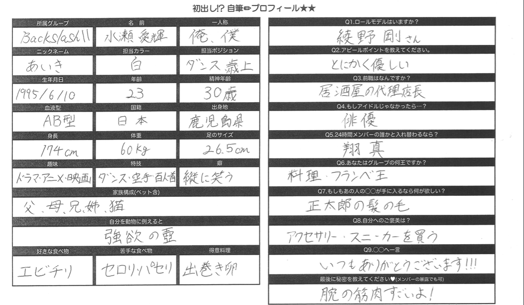【水瀬愛輝】直筆プロフィール公開【Backslash】