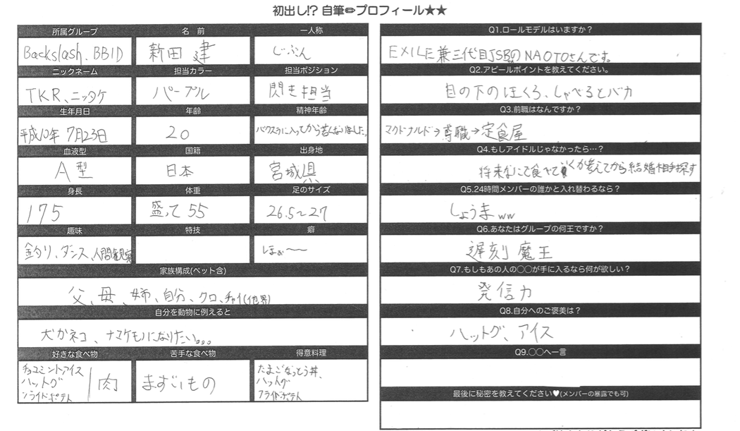【新田 建】直筆プロフィール公開【Backslash】