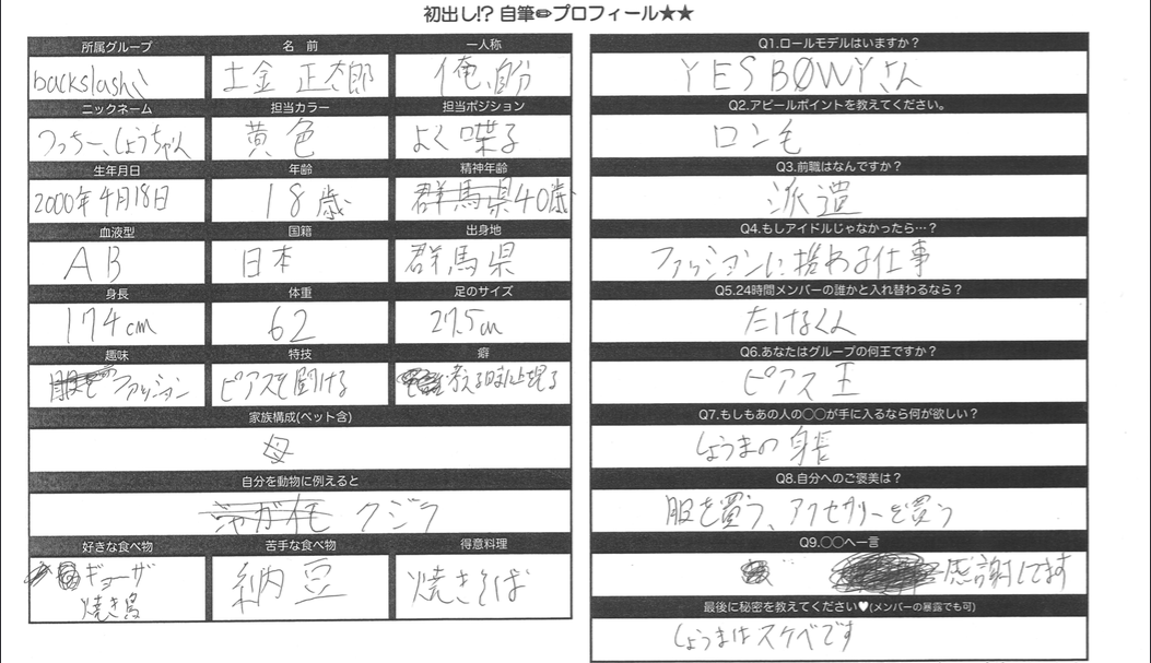 【土金正太郎】直筆プロフィール公開【Backslash】