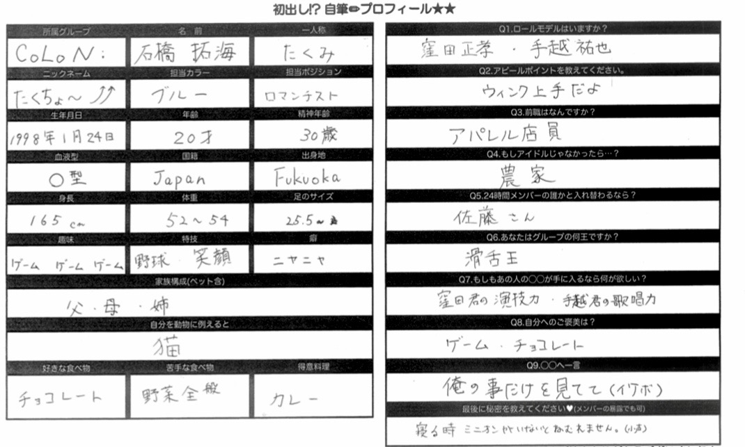 【石橋拓海】アイドル直筆プロフィール【CoLoN:】