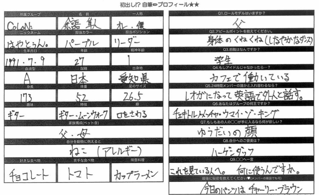 【余語隼人】アイドル直筆プロフィール【CoLoN:】