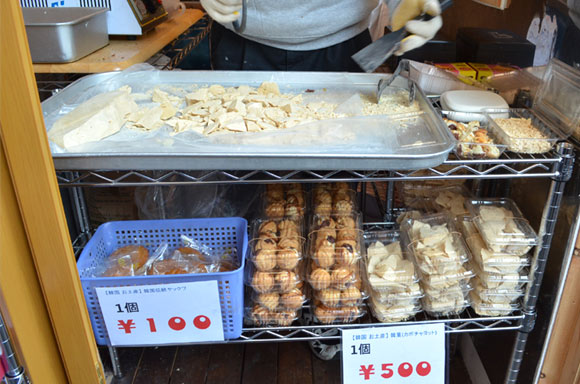大久保通りセブンイレブン前にある韓流ランドの入り口に屋台が出来ました~ホットクが1つ180円と新大久保最安値!パック入りのトッポキもいっぱい入っていてお得♪