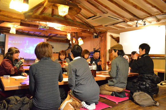 早速自己紹介からスタートです。1名を除き新大久保が初めての方でした。なんと大阪から日帰りで参加している方も!