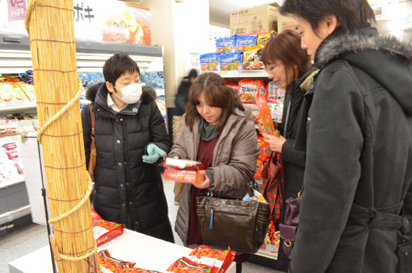 まずは、職安通りにある韓国広場へ。サポーターのアドバイスで、韓国の食材や作り方、美味しい物など教えてもらいながら、それぞれ広い店内を見て回っていました。その後、コリアプラザへ移動しCDやDVDを見ました。アーティストや韓国ドラマの話で大盛り上がり!お互いのオススメなどを教え合っていました。