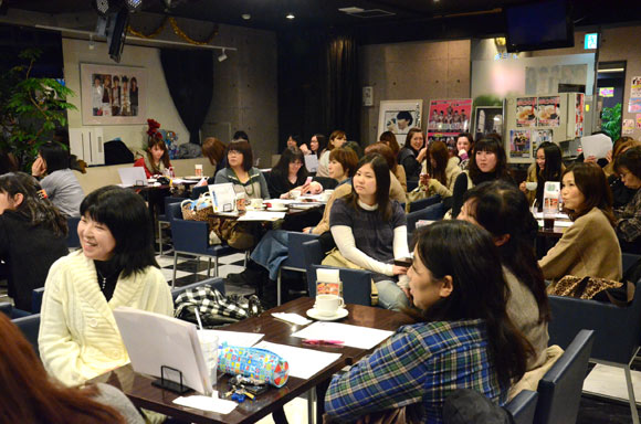 開始10分前にも関わらず、店内は20代~50代の女性のお客さんで満席!教室が始まってからも続々と人が入ってきました。席が足りなくなり、臨時の椅子が出されるほど!全部で70名位いたのではないでしょうか。あいにくの天気にも関わらず大人気のトリプルKです。
