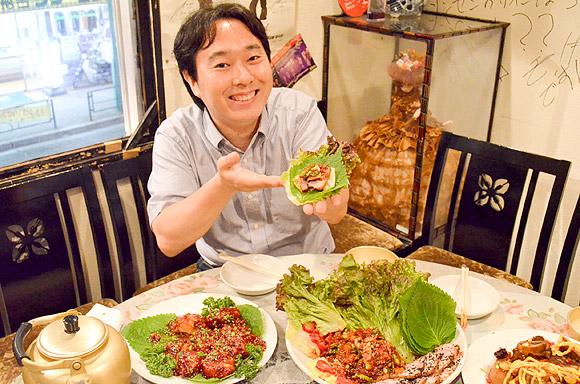 写真:八田氏の行きつけの韓国料理店「美名家」にて。
