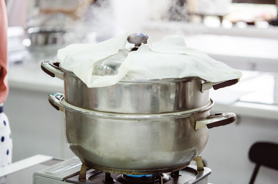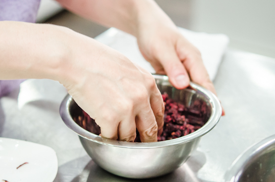 蒸している間に、五味茶作りに取り掛かります。五味子を流水で良く洗い、水気を切った後水を注ぎ約12時間つけておきます。