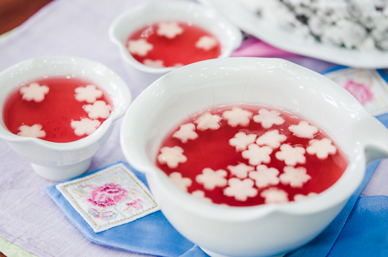 この日のメニューは、「ペクソルギ」という韓国餅の基本である白いお餅と、「五味子茶」という五つの味を楽しめる漢方茶です。
