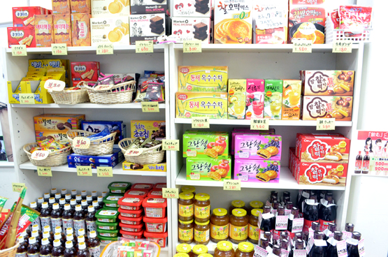 白を基調とした綺麗で清潔感のある店内は、グッズが見やすく陳列されており、韓国食材も取り扱っています。マーケットオーのブラウニーやホンチョ、トッポキセットが人気で、パックも種類が豊富です。お店の一押しは、K-POPアイドルのキャラクター靴下で、今のところ約20種類もあります。