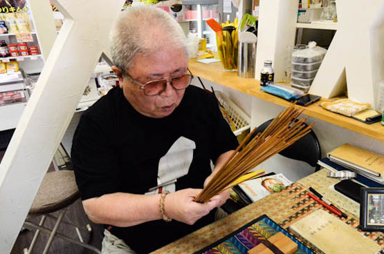 占いをしてくださる藤家洋石先生は50歳で出家して、山で15年の修業を重ねて65歳で下山してからこの仕事を始めました。手相はもちろん、九星気学や易学などで占います。