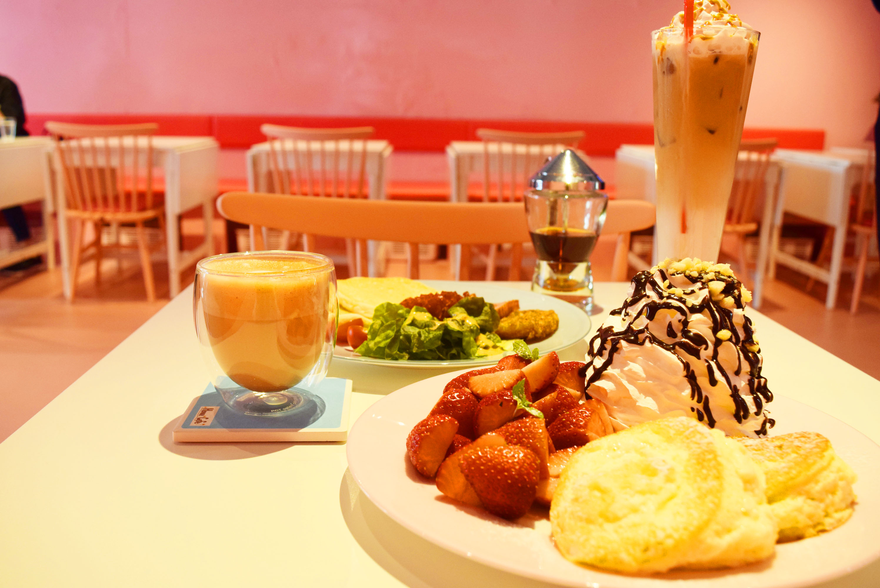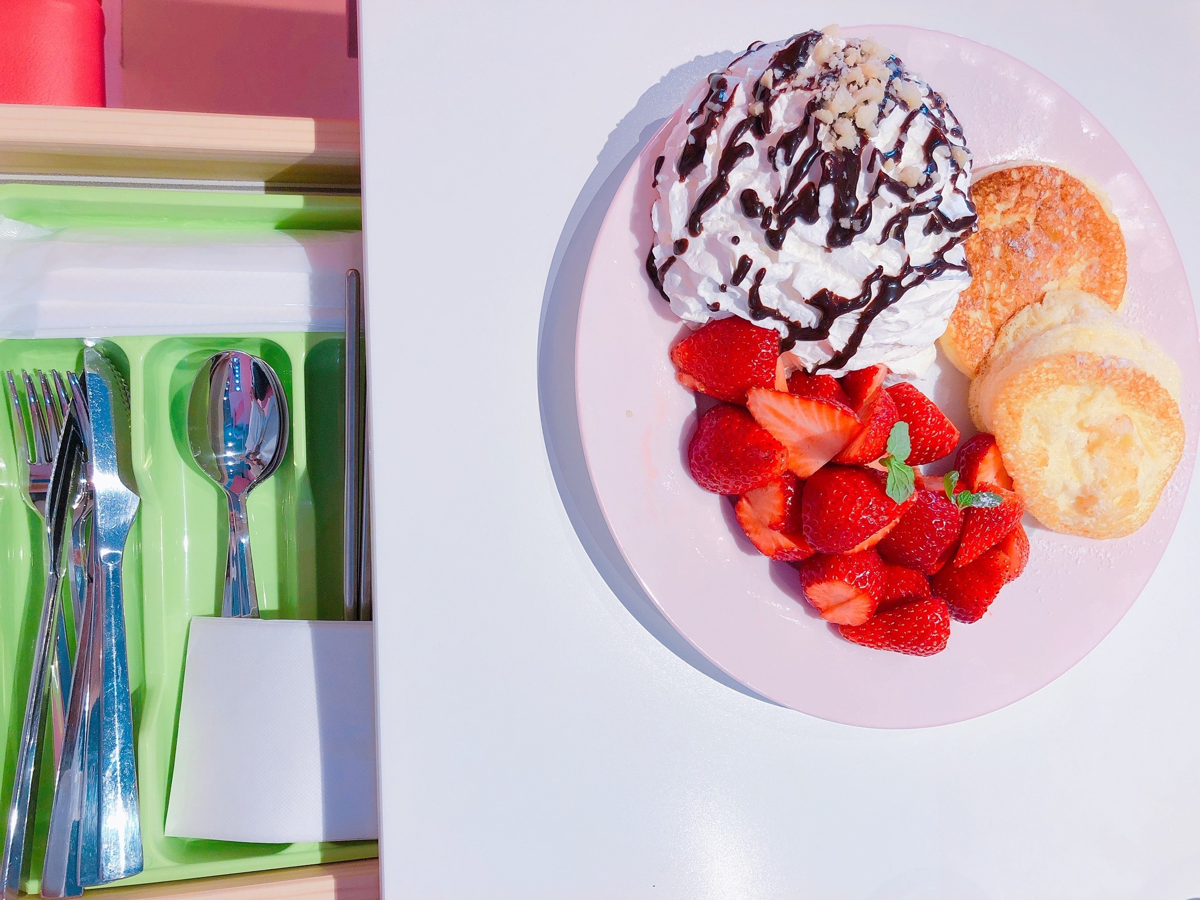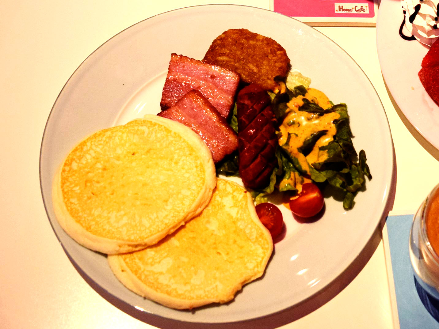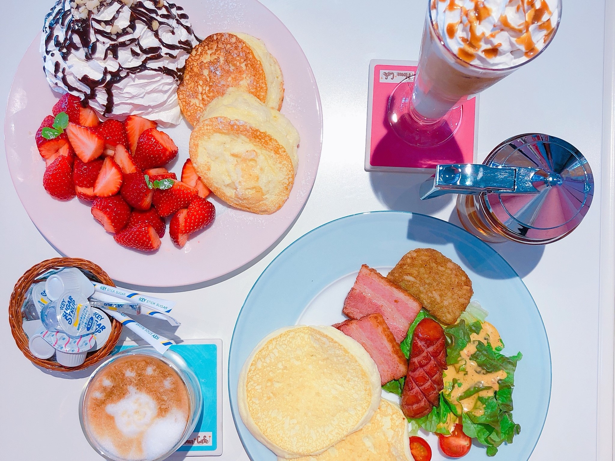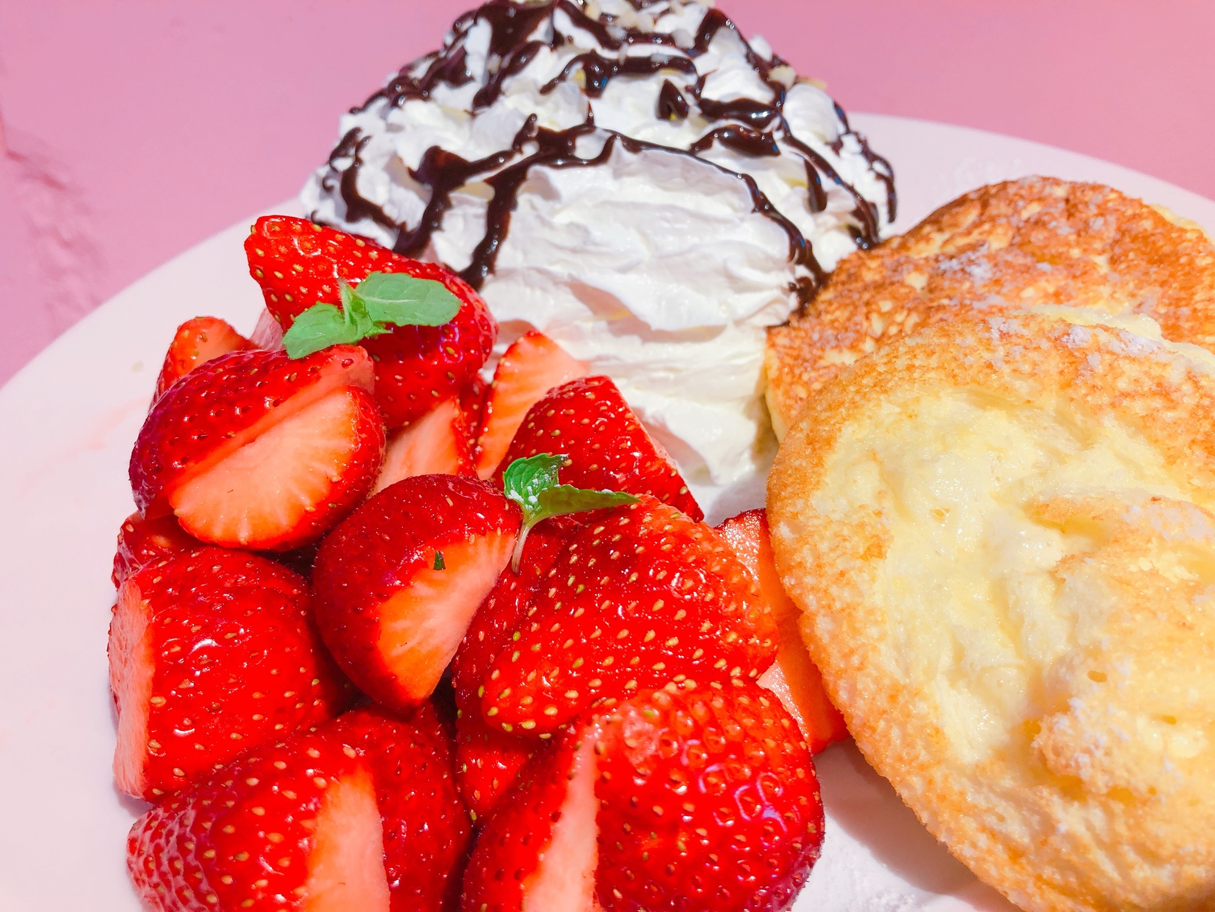 自家製のリコッタチーズで作られたパンケーキ生地には、ボリュームたっぷりのメガホイップで迫力MAX!!