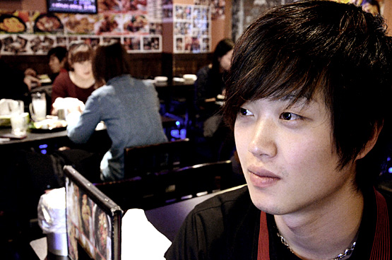 「辛ちゃん」で働いている“ビョン・ドンジュン”さんは、お店の看板イケメン店長!です。韓国のポハン出身で、身長181センチ、来日歴は4年、年齢は86年2月22日生まれの25歳です。来日のきっかけは、日本語の勉強のためです。最初は日本語学校へ、現在はレストランサービスの専門学校に通っています。趣味は1人映画、特技は料理で、お店の新メニューを開発しています。好きな日本料理はおそばで、韓国料理はキムチチゲです。「辛ちゃん」のオススメ料理は、「鉄板炭火サムギョプサル」です。