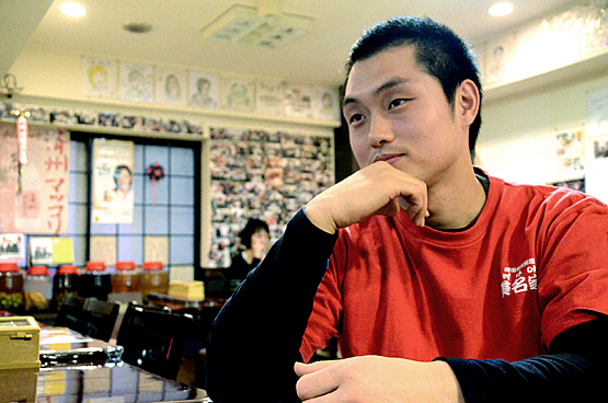 「美名家」で働いている“グォン・ドヒョン”さんは、モムチャーン!のテコンドー韓流男子です。韓国のテグ出身で、身長180センチ、来日歴は3年、年齢は83年9月12日生まれの29歳です。来日のきっかけは日本でテコンドーをするためです。趣味は自転車で散歩をすること、特技はテコンドーで、もう23年もやっているそう!テコンドー5段です。好きな日本料理はお寿司、韓国料理はキムチチゲです。「美名家」のオススメ料理は、「海鮮チヂミ」です。