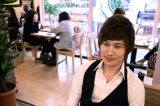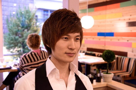 「CAESAR Cafe」で働いている“イ・ギョンジョン”さんは、彼女思いな韓流男子です。韓国出身で、来日歴は1年半、身長は180cm、年齢は1993年1月1日生まれの19歳です。来日のきっかけは日本の大学へ進学するためで、日本語は日本語学校で勉強中しました。趣味も特技もバスケで、好きな日本料理は彼女のオムライス、韓国料理はサムギョプサルで、お店のオススメメニューは、「ベルギーワッフル」です。