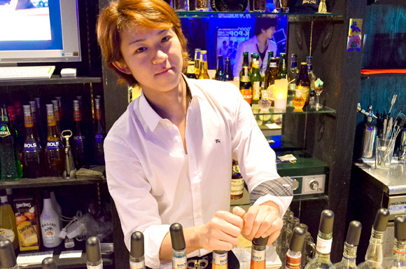 「Bar 韓男子」で働いている“イ・ヨンキル”さんは、日本語研修中な韓流男子です。韓国のソウル出身で、来日歴は3ヵ月、身長は175cm、年齢は1988年2月15日生まれの24歳です。来日のきっかけは日本語研修のためで、現在は日本語学校に通いながら日本語を勉強しています。趣味は水泳とスノーボードで、特技も水泳です。好きな韓国料理はインスタントラーメンです。お店のオススメメニューは、「ウィスキーのストレート」です。