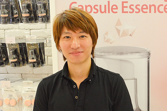「TONYMOLY」で働いている“イ・ドフン”さんは、茶道の魅力にハマった?! 韓流男子です。韓国の釜山出身で、来日歴は1カ月、身長は168cm、年齢は1984年6月18日生まれの28歳です。日本に来たきっかけは大学で専攻していた日本語を生かし色々と経験するためです。趣味はランニングで、好きな日本料理はお寿司、韓国料理はキムチチゲです。お店のオススメ商品は、「蛇毒とミスト」です。