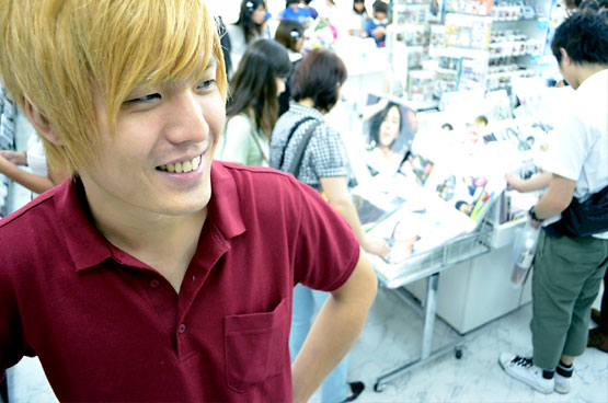 「韓流百貨店」でグッズチームとして働いている“チェ・コンボム”さんは、金髪が似合う長身のイケメンです。韓国のソウル出身で、来日歴は9か月、身長は181cm、85年生まれの26歳です。韓国でファッションを専攻しており、日本のファッションに興味があったために来日を決めたそうです。女性のファッション誌までチェックするおしゃれさんです。趣味はゲームとサッカーで、マンチェスターユナイテッドを応援しているそうです。特技はデザインです。好きな日本料理は天丼、韓国料理はサムギョプサルです。