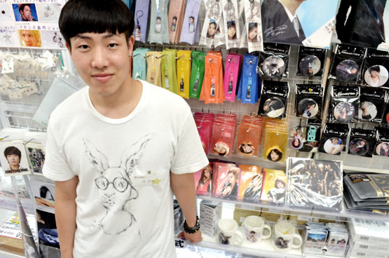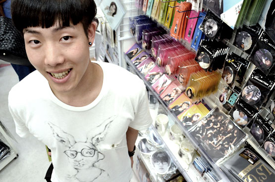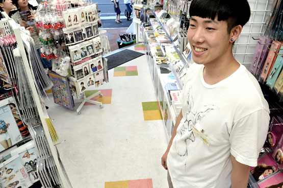 「IDOL PARK」で働いている“マ・ユソク”さんは、ディズニー大好き!ミッキー大好き!な韓流男子です。そのため、あだ名はミッキーだそう。韓国のソウル出身で、来日歴は2年半、身長は178cm、81年3月生まれの30歳です。日本に来たきっかけは、日本語の勉強と大好きなディズニーランドとシーがあるためです。趣味はディズニーに行くことと買い物で、原宿によく行くんだとか。特技は写真とデザインで、今はお店のインテリアやポスターをデザインしています。好きな日本料理はつけ麺とラーメンで、韓国料理はサムギョプサルです。。「IDOL PARK」のオススメの商品はカンバッチです。