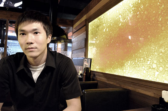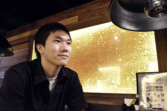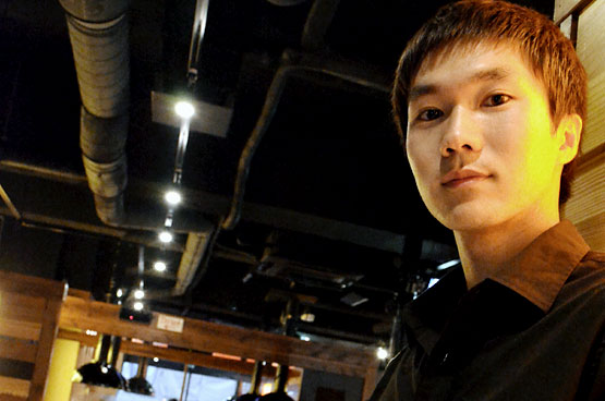 「プングム スップル店」のホールで働いている“チョ・チェソン”さんは、スポーツ大好きなさわやか系韓流男子です。韓国のウルサン出身で、来日歴は3か月、身長は178cm、88年1月生まれの23歳です。来日したきっかけは、専攻している旅行関係の仕事のための日本語の勉強と、日本が好きで日本のサービスや礼儀を学びたいと思ったためです。趣味はサッカーで、バルセロナを応援しておりメッシの大ファンだそう。特技はスポーツです。好きな日本料理はお寿司、韓国料理ではサムギョプサルです。お店でオススメの料理はキムチ餅チーズチヂミです。