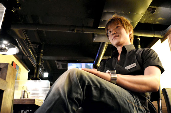 「プングム フレッシュ店」で働いている“ジョン・ジンウ”さんは、ワイルドな韓流男子店長です。韓国のソウル出身で、来日歴は5年、身長は175cm、81年1月生まれの29歳です。来日したきっかけは日本語の勉強と、調理学校に通うためです。趣味は料理でたまーに家で作るそうです。好きな日本料理はお寿司で、韓国料理はサムギョプサルです。お店でオススメの料理はかんなサムギョプサルです。