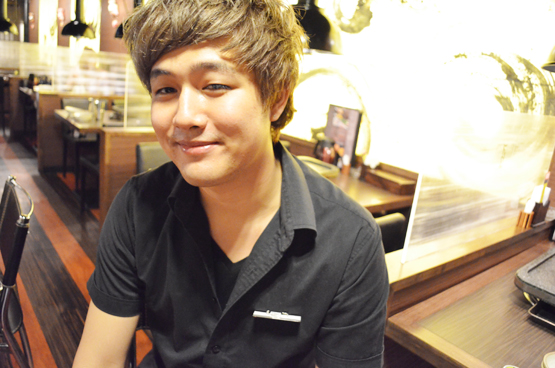 「プングム フレッシュ店」のホールとして働いている“パク・ギュヒョ”さんは、雰囲気がニックン(2PM)っぽい?!韓流男子です。韓国のソウル出身で、来日歴は1年8か月、身長は180cm、87年3月生まれの24歳です。来日したきっかけは、おばさんが日本に住んでおり小さいころから日本になじみがあったことと、日本語の勉強のためです。趣味は日本のドラマや映画鑑賞と音楽鑑賞で、特技はパソコンです。好きな日本料理はお寿司、韓国料理はビビンパです。お店のオススメ料理はキムチ餅チーズチヂミです。