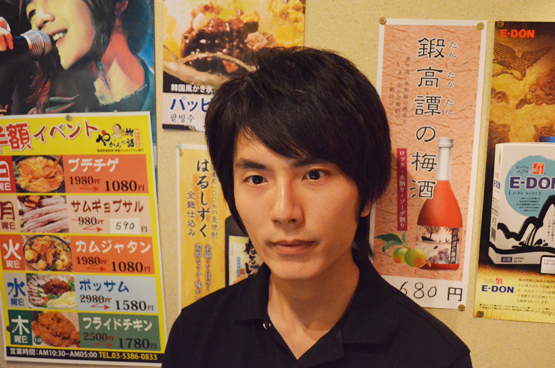 「やかんの物語」で働いている“チェ・イェリン”さんは、中国からの留学生華流男子です。中国の上海出身で、来日歴は1年半、86年生まれの25歳です。来日したきっかけは日本語を勉強するためです。日本語学校を卒業したら専門学校に通うそうです。趣味は旅行と絵を描くことです。好きな日本料理はお寿司、韓国料理はサムギョプサルです。