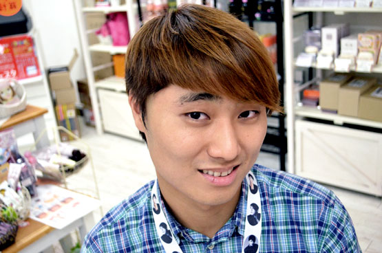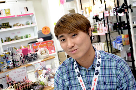 「韓流スペース」で働いている“ソンミン”さんは、日本をこよなく愛する韓流男子です。韓国のアニャン出身で、来日歴は11か月、身長は179.1cm、88年2月生まれの23歳です。来日のきっかけは日本が好きで住みたいためです。趣味は少女時代と東方神起と日本のドラマ鑑賞で、特技はバスケットボールです。好きな日本料理は全部です。オススメの商品は、東方神起コーナーとマスクパックです。