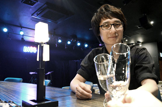 「Live Bar Blue」でチーフマネージャーとして働いている“ソン・テジュン”さんは、料理が得意な韓流男子です。韓国の釜山出身で、来日歴は5年、身長は173cm、81年11月生まれの29歳です。自分で飲食店を開くことを目標に来日しました。日本語学校に通った後に、通訳の勉強のために専門学校に通ったそう。趣味はスノーボードで、特技は料理です。好きな日本料理は刺身、焼きそば、もんじゃ焼きで、韓国料理は地元釜山で有名なテジクッパプとスンデです。お店のオススメメニューは、お客さんのお好みで作るオリジナルカクテルです。
