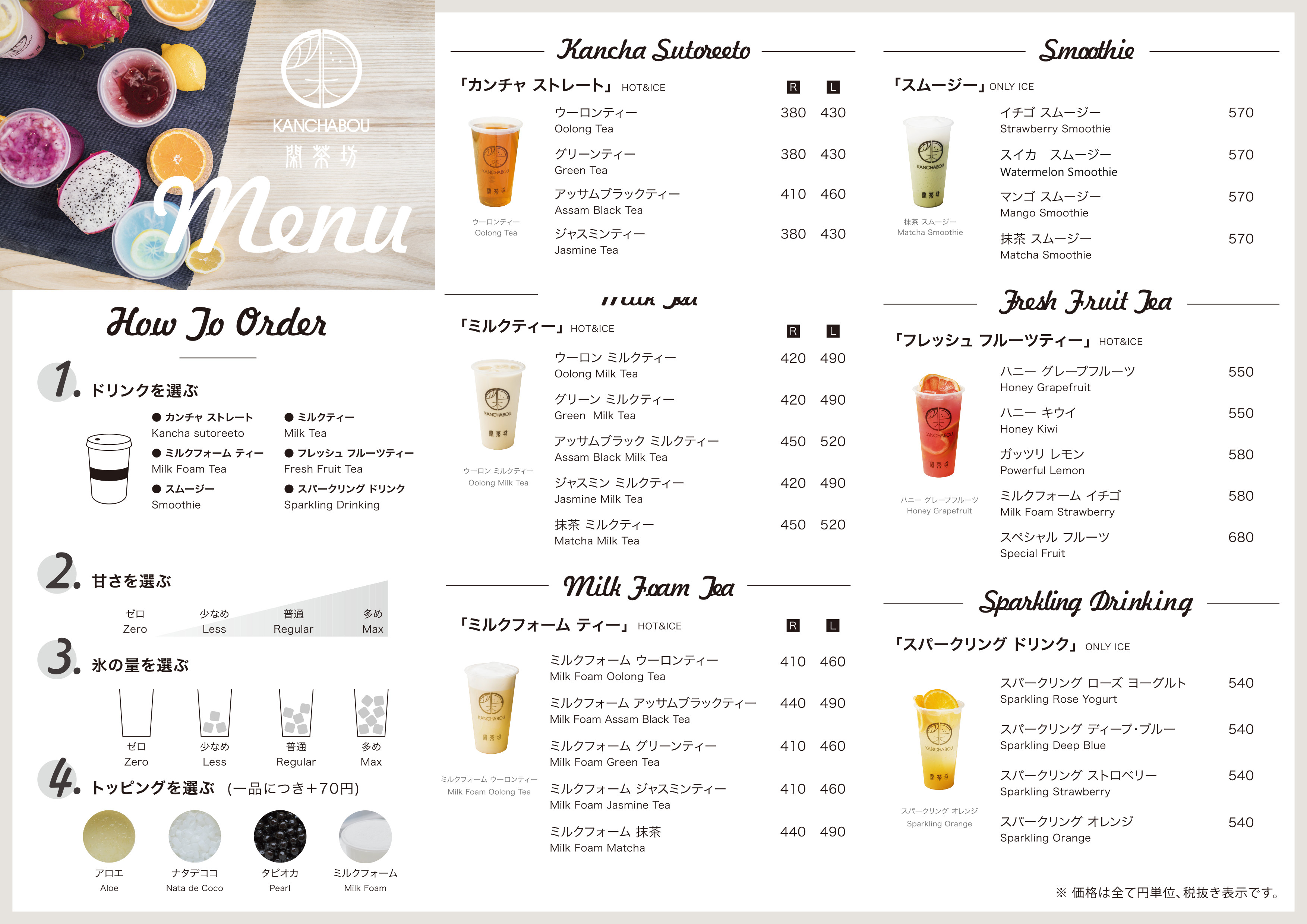 スパークリング/ミルクフォーム/スムージー/フレッシュフルーツ/カンチャストレート