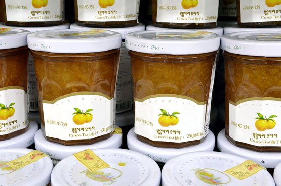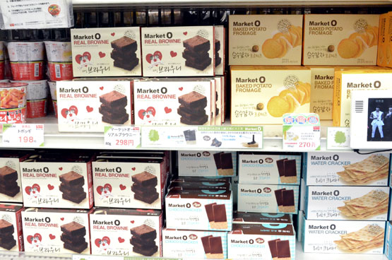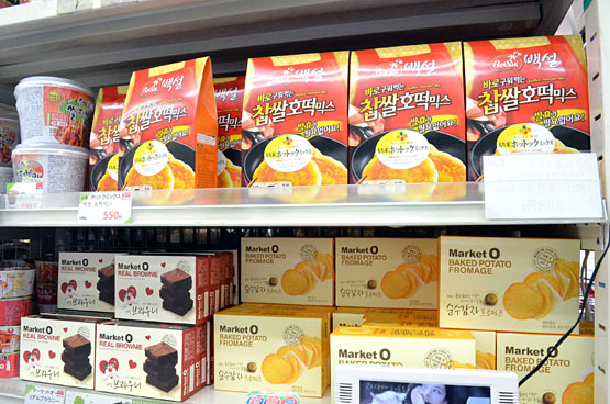 常に3000種類の商品が常備されており、野菜、ドリンク、韓国酒、韓国茶、韓国インスタント麺、韓国のお菓子、自家製のキムチ類・おかず・お惣菜類、精肉、鮮魚、韓国伝統餅、韓国のアイス、韓国の食器、新商品コーナー以外に日本の商品まで揃っています。新商品コーナーは月に1.2個のペースで入荷されます。自家製お惣菜は5種類で、キンパは平日に400個以上売れるほどの人気です。自家製のキムチ類も約40種類もあります。精肉類はお好みの厚さに合わせて切ってくれるサービスも実施中です。どれもリーズナブルで、旬で、新鮮な食材です。見ているだけで十分楽しめます。今大人気のホンチョや韓国スナックなどの試食や試飲が行われています。