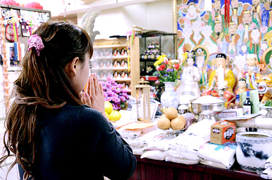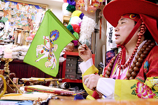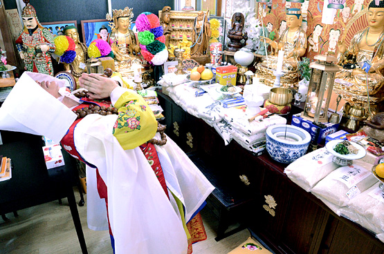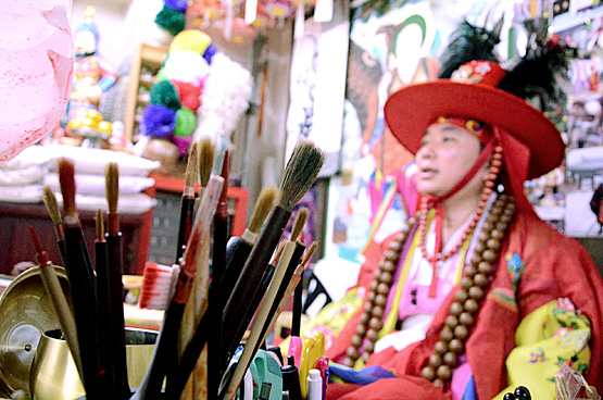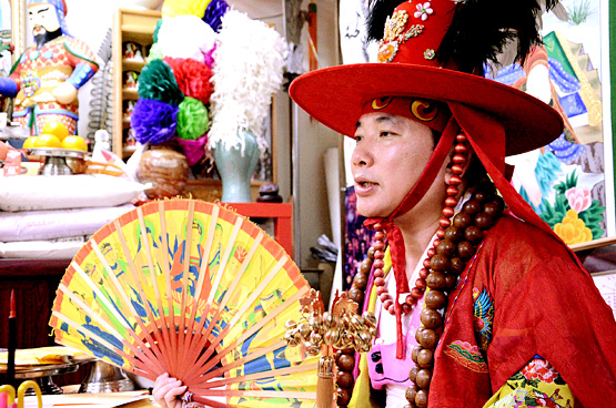 着る衣装により降りてくる神様が異なり、言葉遣いや声、雰囲気、占い方までガラリと変わります。先生曰く、占いに国籍は関係なく、祈ったらどの国もみんな同じで、先生は韓国人としてではなく、ムーダンとして色々な人を助けるために今新大久保にいるそうです。