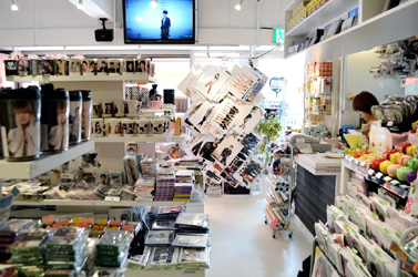 2011年6月オープン。元はウェブサイトのみでのグッズ販売でしたが、新大久保の本社まで来るお客さんが多かったので、お店としてオープンしたそう。そのため店内にはグッズ・CD・DVD・化粧品・アクセサリー・公式グッズが、面積に比例して膨大な商品が置かれています。CDは入荷が早く韓国で出た翌々日には確実に入荷されています。サウンドトラックも在庫が豊富にあるため古い物でも置いてあります。