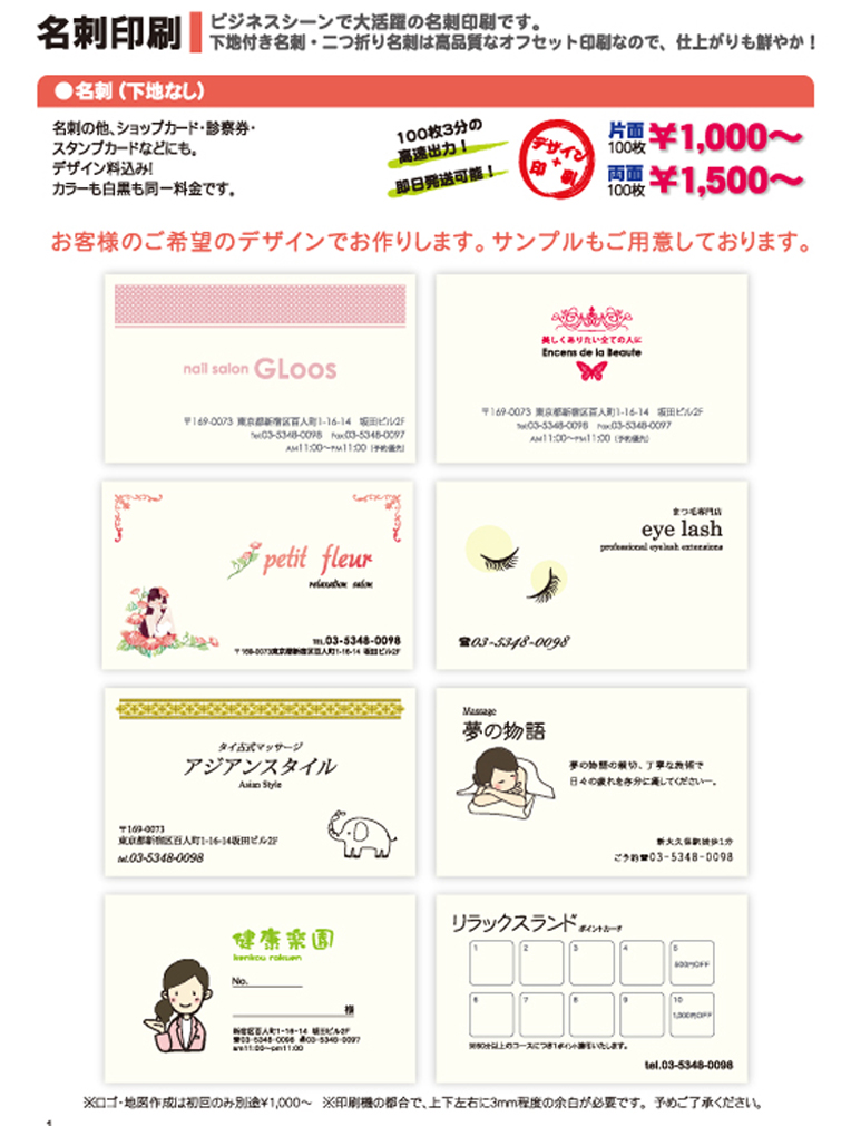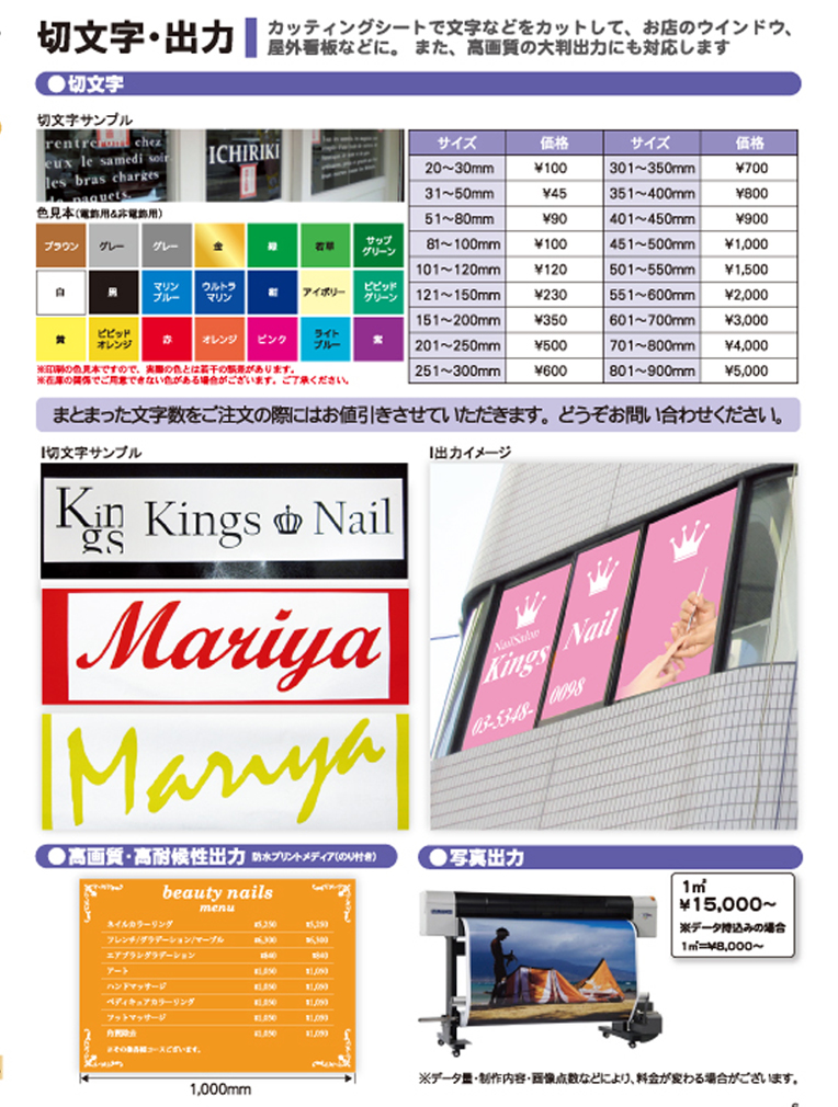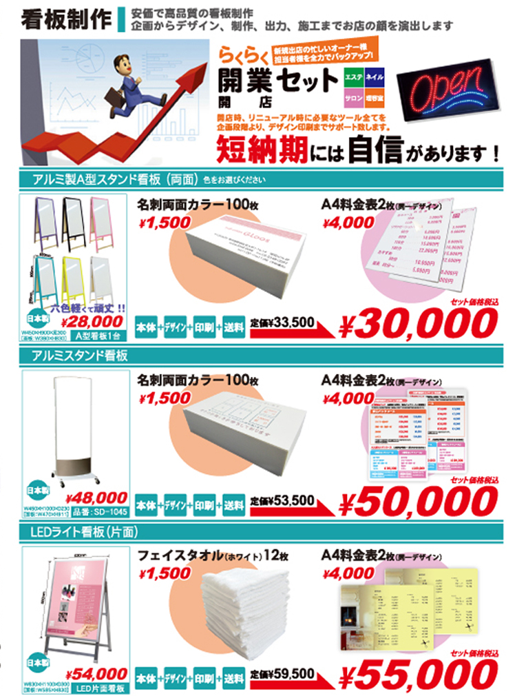☆看板の販売 ☆エステ用品販売 ☆名刺チラシ各種印刷関出力プリプレス ☆大型インクジェットプリントサービス