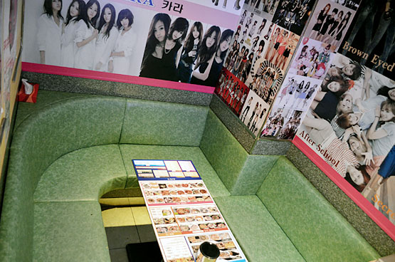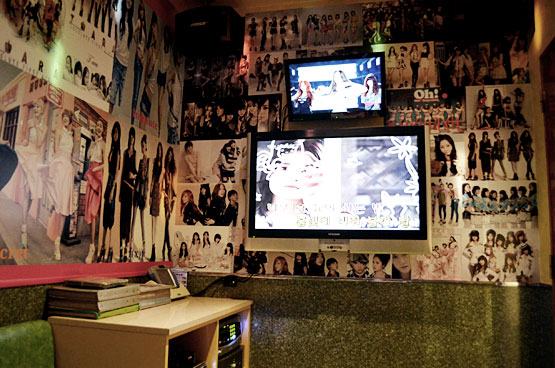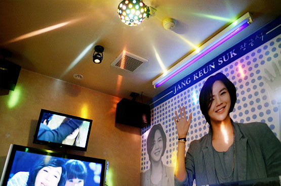 全部で6部屋あり、全て6~7名が入る部屋です。1号室はチャン・グンソク部屋で、チャン・グンソクさんの壁紙になっています。2個あるモニターのうち1つは、チャン・グンソクさんの出演したテレビ番組などがエンドレスで流れています。2号室はガールズグループ部屋です。KARAや少女時代などガールズグループの壁紙になっています。ここも1つのモニターでは、エンドレスでK-POPのMVなどが流れています。2部屋ともファンにはたまらないですね!空いていれば部屋を指定することも可能です。