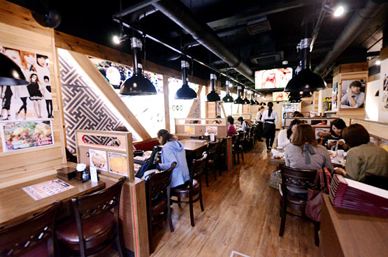 オープンしたての綺麗な店内には、韓国から取り寄せたという画質の良い大きなポスターがたくさん貼られており、POPな雰囲気です。モニターが4つもあるのでKPOPのMVや音楽番組を存分に楽しみながら食事をすることが出来ます。