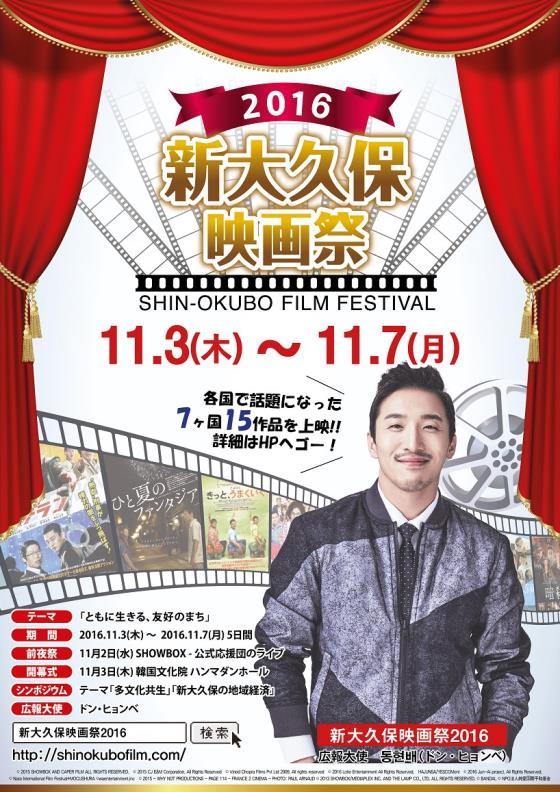 11月3日~7日に開催される「2016年新大久保映画祭」の広報大使に「BIGBANG」SOLの兄、ドン・ヒョンベに決定!