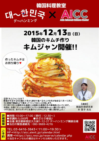 「デ~ハンミング」&AICCのコラボ料理教室!<キムチ作り(キムジャン)>